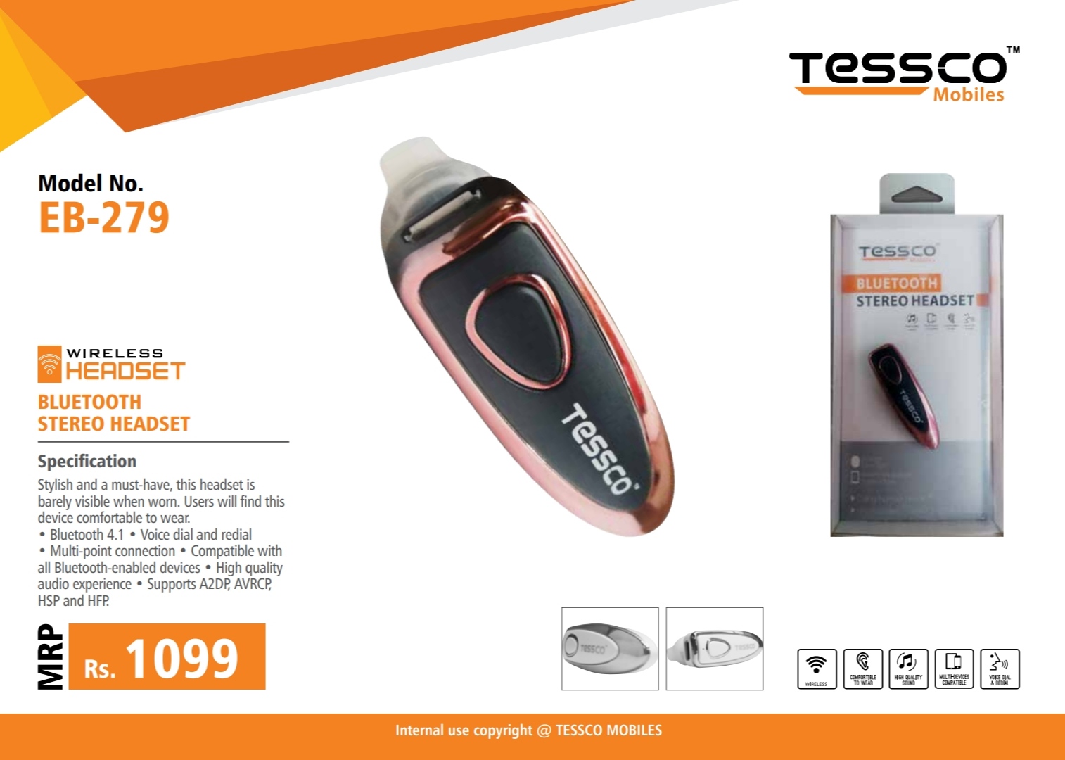 Tessco EB-279 -Tessco Mobiles get you an amazing Bluetooth stereo headset. Perfect for the young and happening folks, these are the ultimate tech inventions. Grab your deal and get set go! With such advanced features at an amazing price, bet you can’t miss this one. With these amazing tech inventions, make your life an amazing musical.